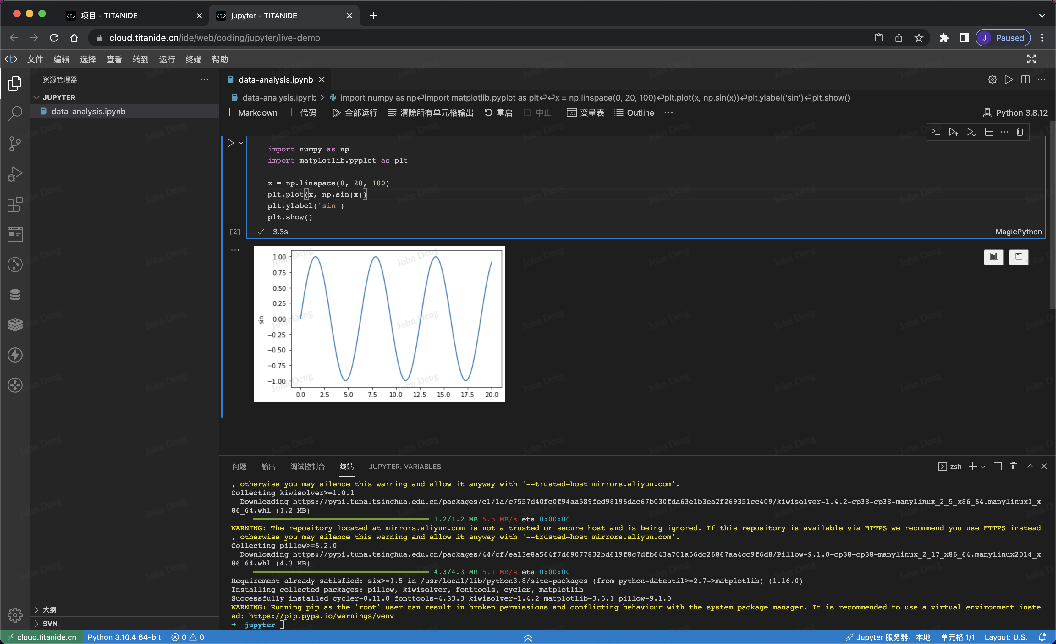 通过本文提到的方法,您可以在 15 分钟内快速的通过 TITANIDE (在线IDE)提供的开箱即用的 Python 模板,创建 Jupyter Notebook 实现数据分析。