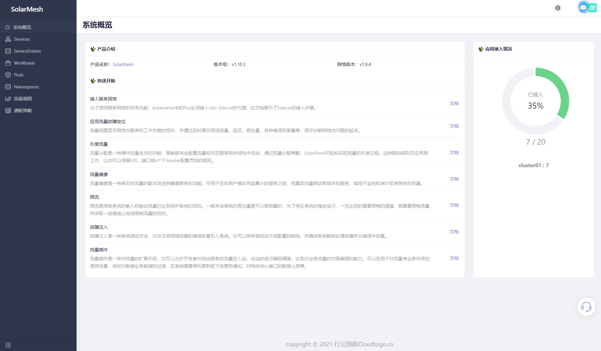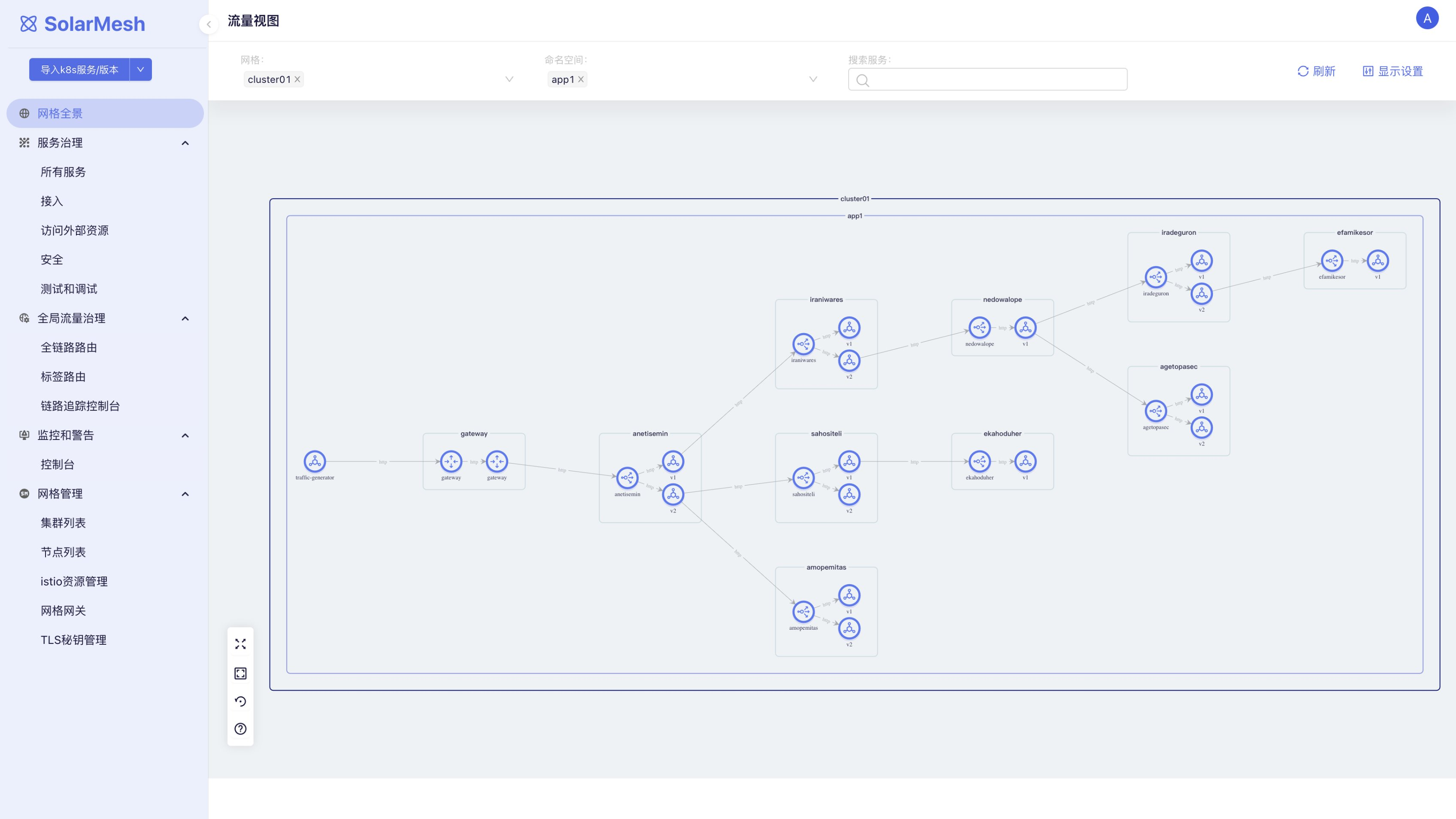 SolarMesh是huatihui创新推出的流量治理平台,它基于Istio,为部署在K8s集群上的应用提供全面的流量治理能力。