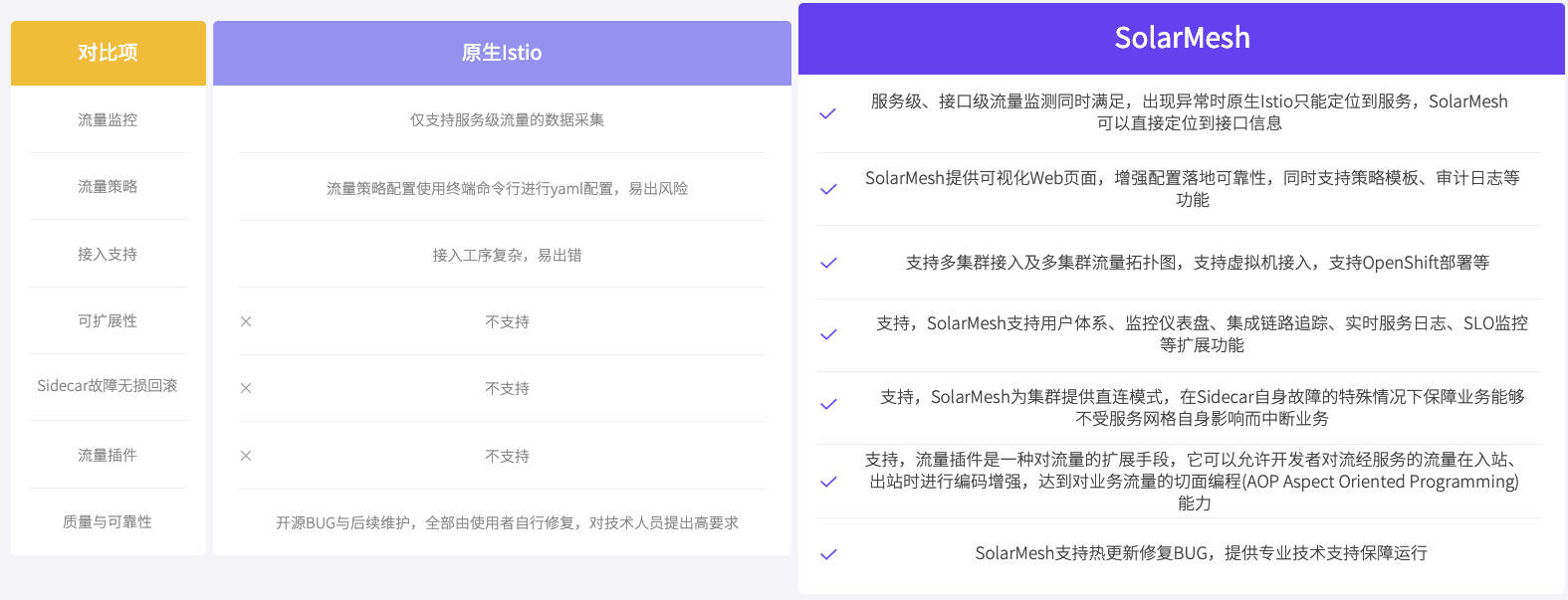 相比起 Istio,SolarMesh 更适合应用于企业场景: